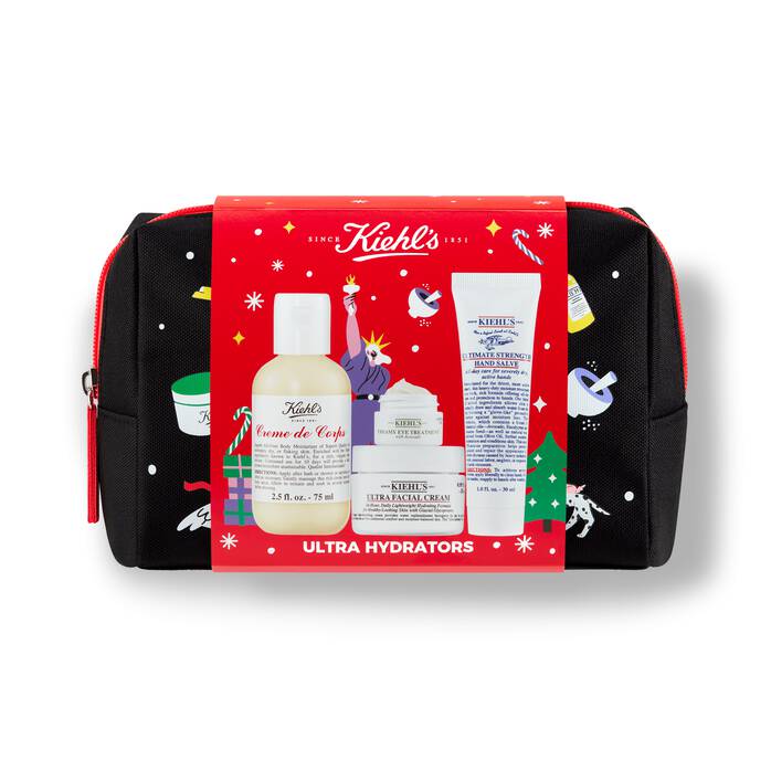Un bonito neceser con una pequeña selección de esenciales hidratantes para el rostro y cuerpo Ultra Hydrators de la firma Kiehl’s una de las mas sostenibles y ecológicas de cosmética.
