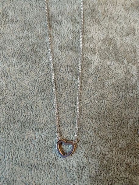 Preciosa y delicada gargantilla en Plata de Ley con acabado de rodio con colgante con forma de corazon .