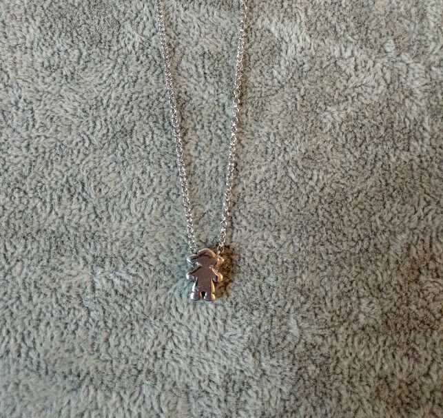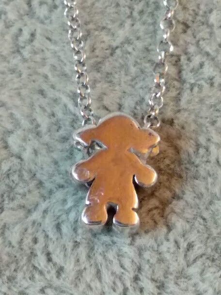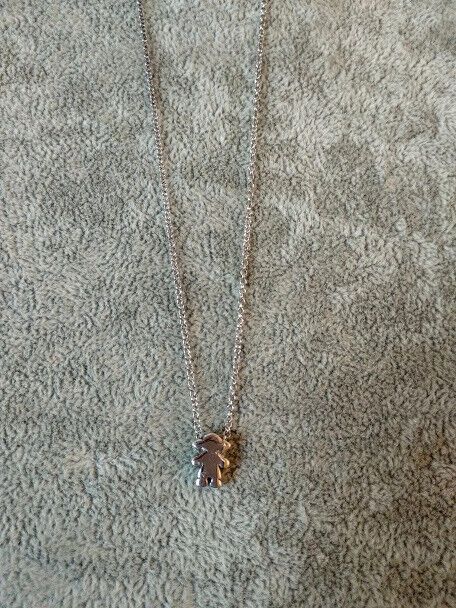 Preciosa y delicada gargantilla en Plata de Ley con acabado de rodio con colgante con figura de una niña.