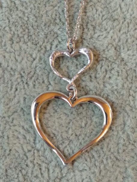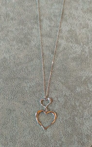 Preciosa y delicada gargantilla en Plata de Ley con acabado de rodio con colgante de dos corazones.