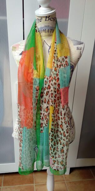 Delicado fular de mujer con estampado muy colorido y alegre combinando print animal.
