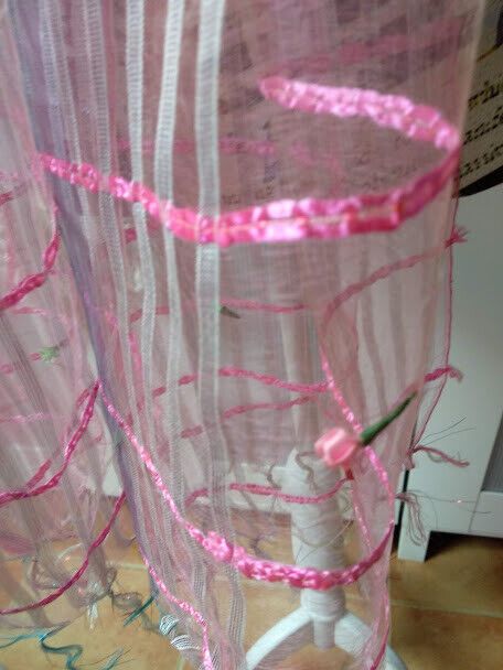Fular de mujer color rosa con pequeñas flores bordadas 100% seda.