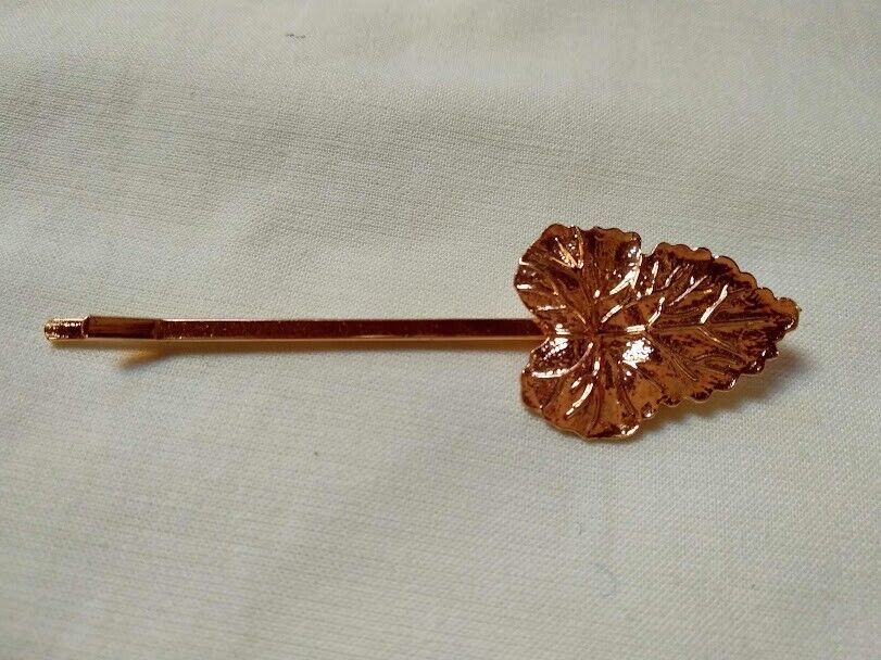 Bonita horquilla para el pelo en color dorado con forma de hoja.