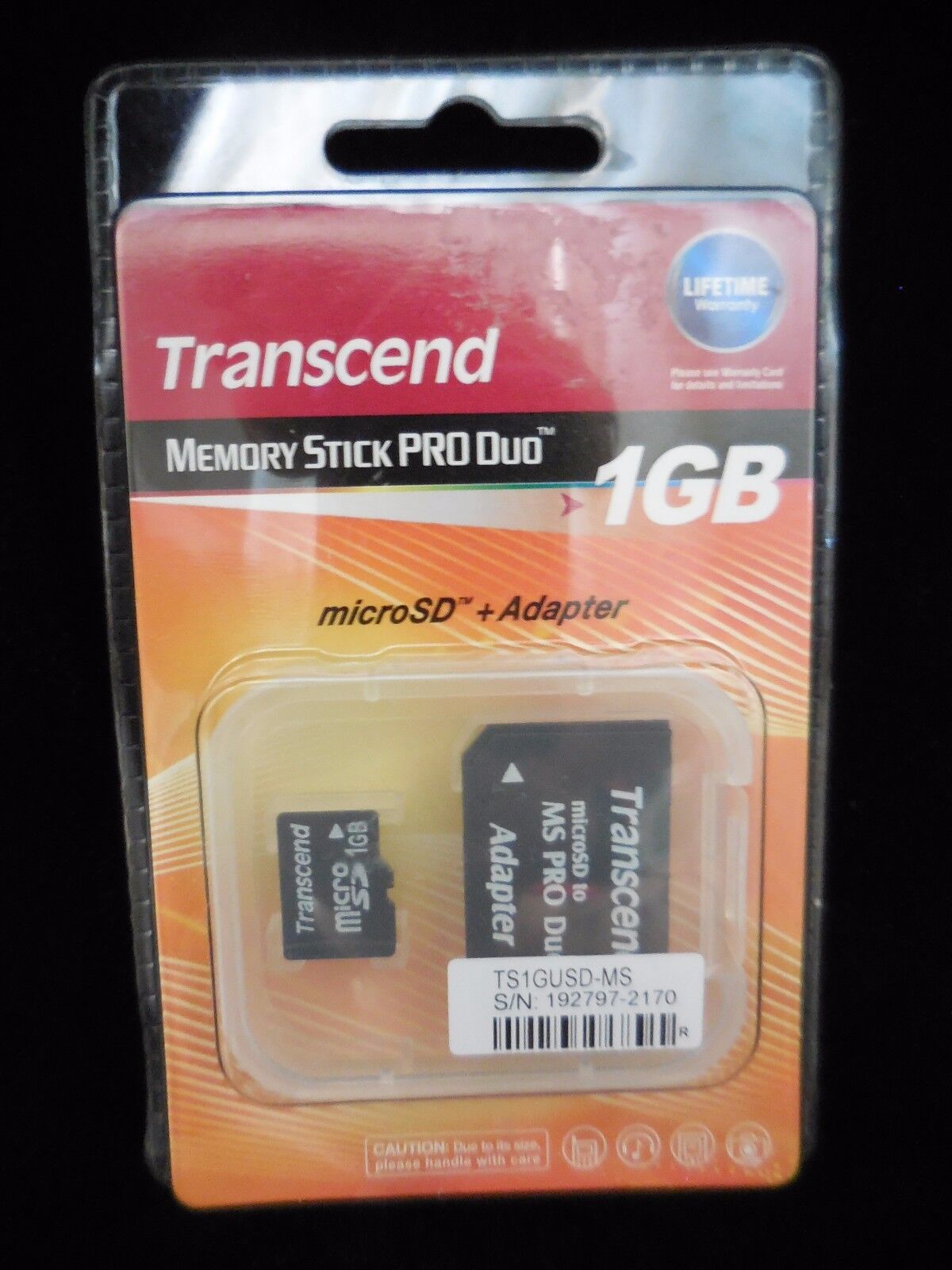 Memory Stick Pro Duo marca Transcend de 1 GB de capacidad.