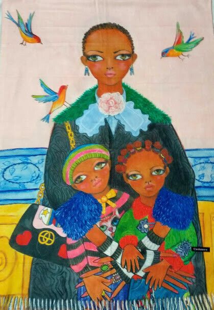 Pasmina Cashmere estampado madre con 2 niños  Nuevo con etiquetas (105)