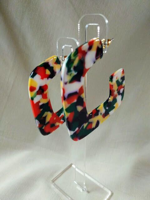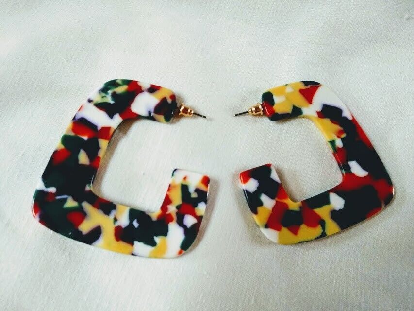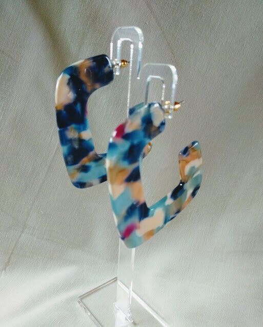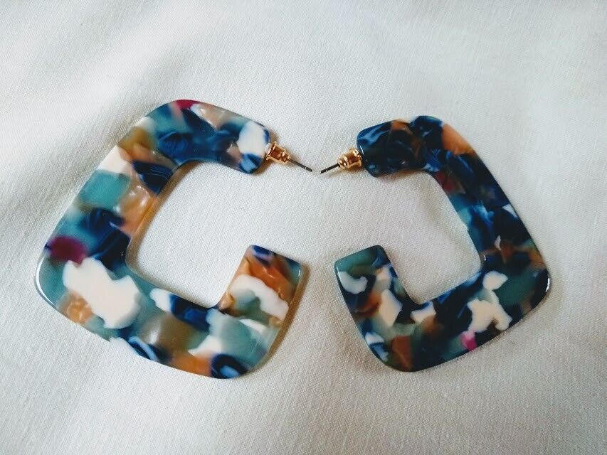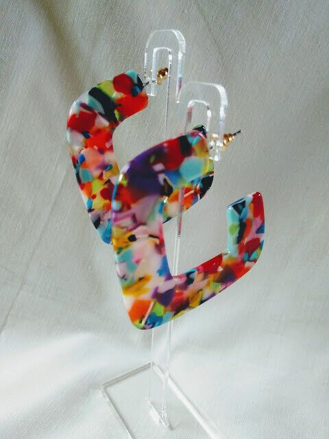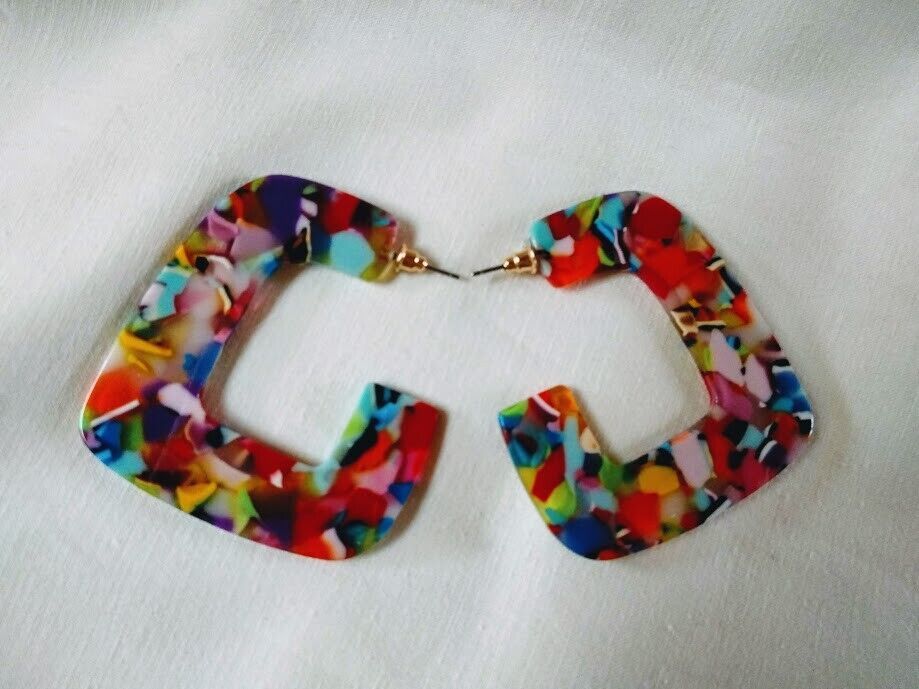Juveniles y favorecedores pendientes de bisutería fabricados en acetato de gran calidad y diseño con bonita combinación de colores.