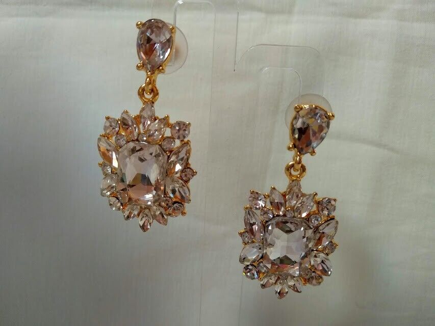 Elegantes pendientes de bisutería dorados de nuestra colección modelo Josefina cuajados de símiles blancos.