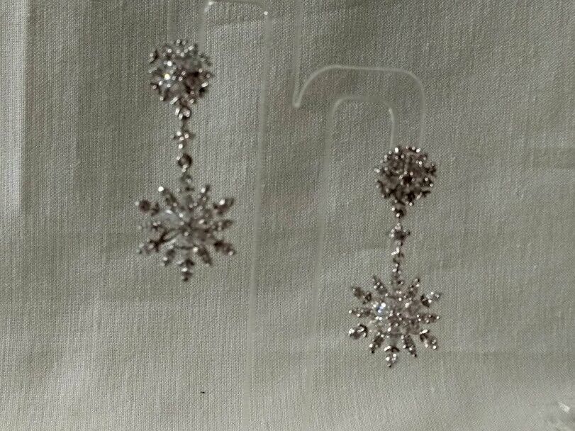 Preciosos pendientes bisuteria rodiada largos con circonitas color blanco formando una estrella