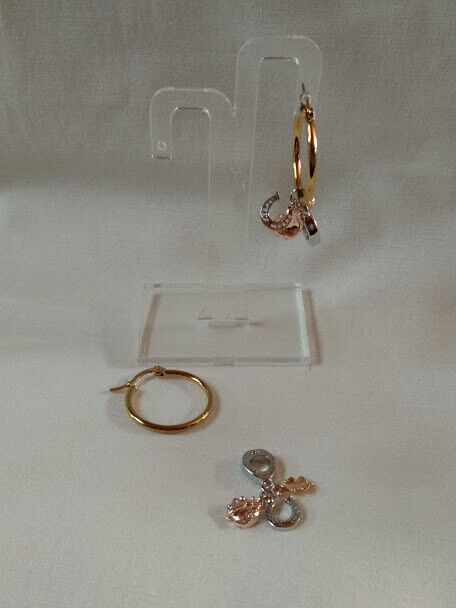 Preciosos y exclusivos pendientes de aro en acero dorado anti-alérgicos con colgante tipo pandora compuesto por una mariquita,una flor y una herradura en dorado y plateado.Se pueden usar con el colgante o quitando lo se convierte en un sencillo pendiente de aro. Los aros tienen un diámetro de 2,9 cm y los fetiches del colgante tienen un tamaño de 1 cm aproximadamente. Únicos y exclusivos Elegantes y femeninos para completar tu look mas sofisticados en eventos o veladas especiales o para tu día a día. Todos nuestros envíos son certificados y se realizan desde España.Suelen llegar en un máximo de 4 a 5 días laborables Por favor si el pedido se realiza desde Canarias tener en cuenta los especiales gastos de envío así como facilitar el nº de D.N.I. Gracias.
