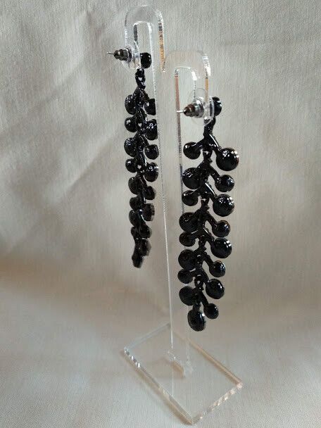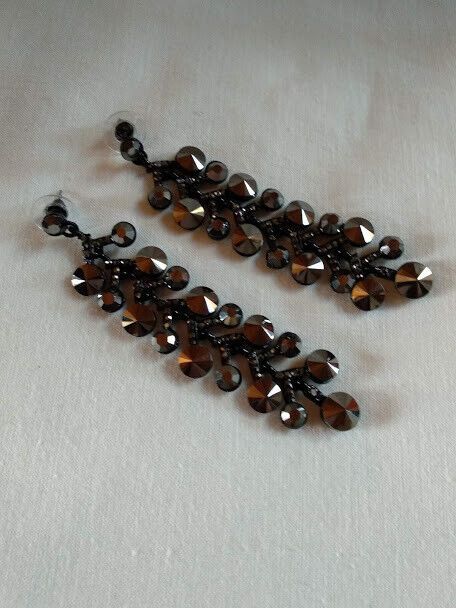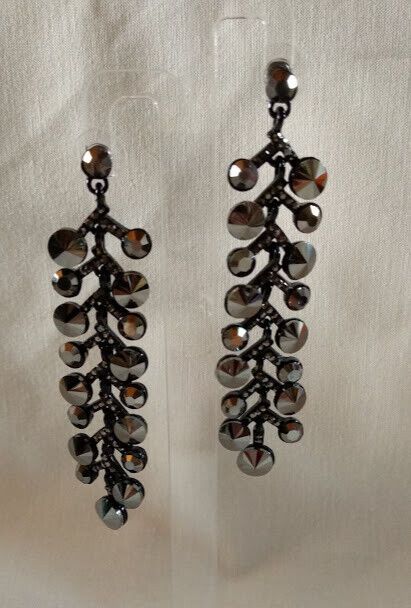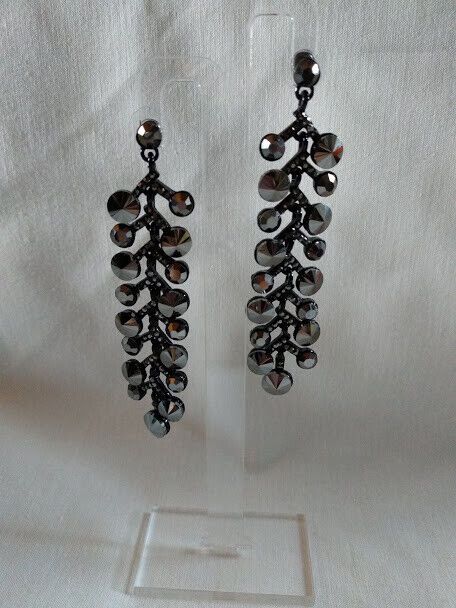 Elegantes y sofisticados pendientes de bisutería libre de niquel en color negro con cristales grisaceos facetados en forma de cascada.