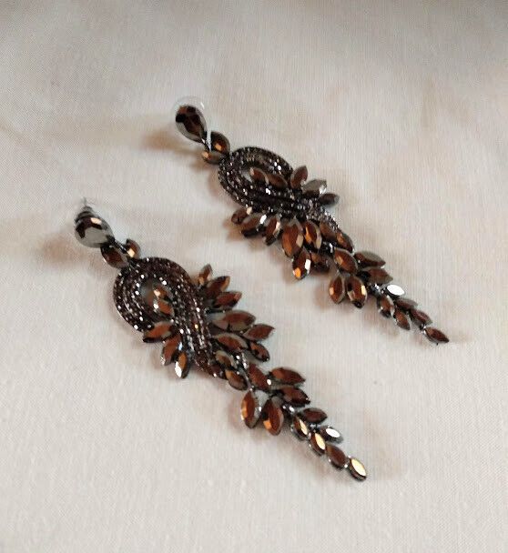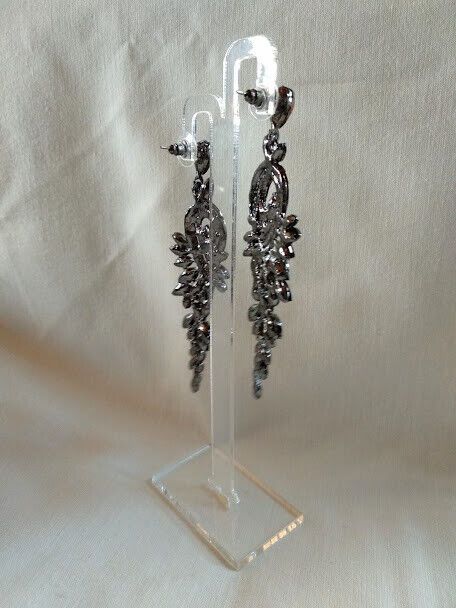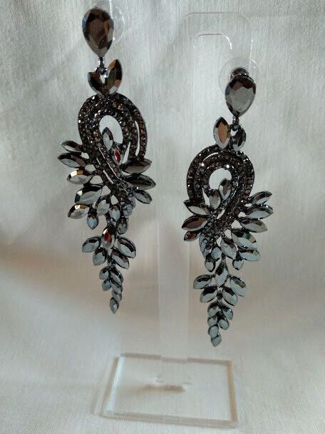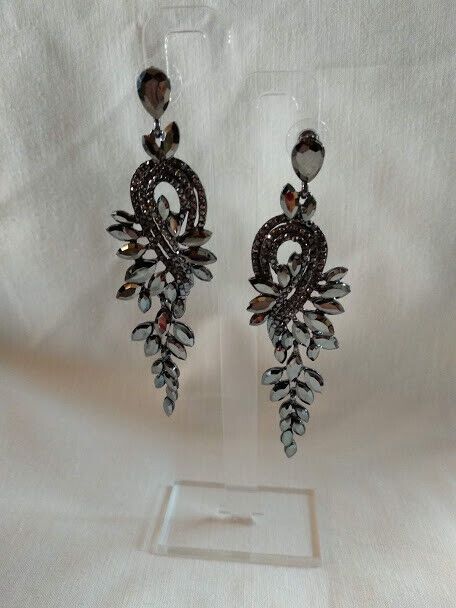 Elegantes y sofisticados pendientes de bisutería libre de niquel en color negro con cristales grisaceos facetados en forma de cascada.