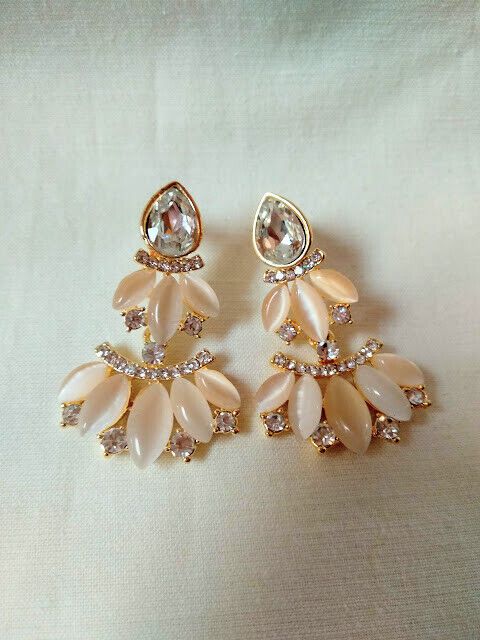 Largos en cascada combinando piedras y cristales en tonos blancos y beige.