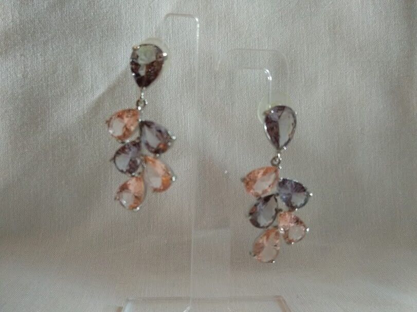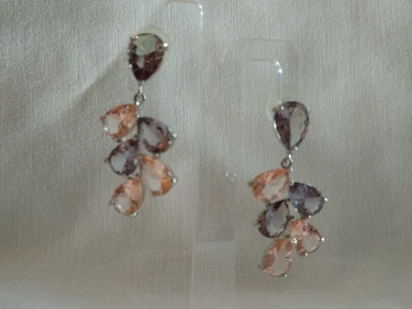 Elegantes y sofisticados pendientes de mujer en bisutería libre de níquel con cristales tallados en color salmon y lila.