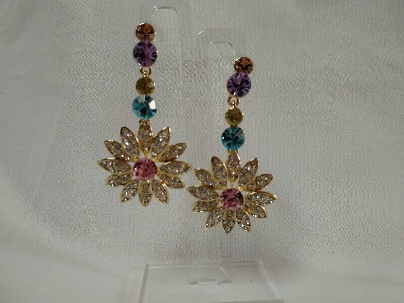 Elegantes y sofisticados pendientes de mujer en bisutería libre de níquel con pedrería de colores.