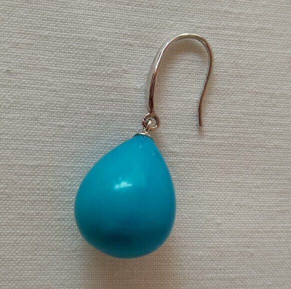 Preciosos pendientes largos en plata de ley con colgante de piedra de polvo de turquesa en forma pera.