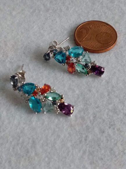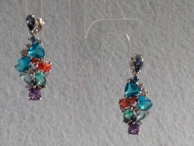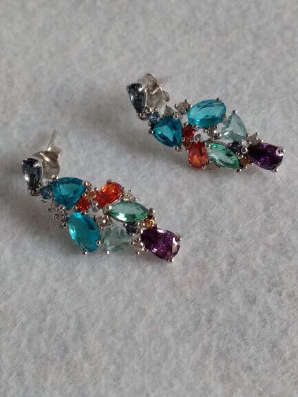 Preciosos pendientes en Plata de primera Ley rodiada con piedras multicolor en cascada engastadas con garras para su mejor sujeción