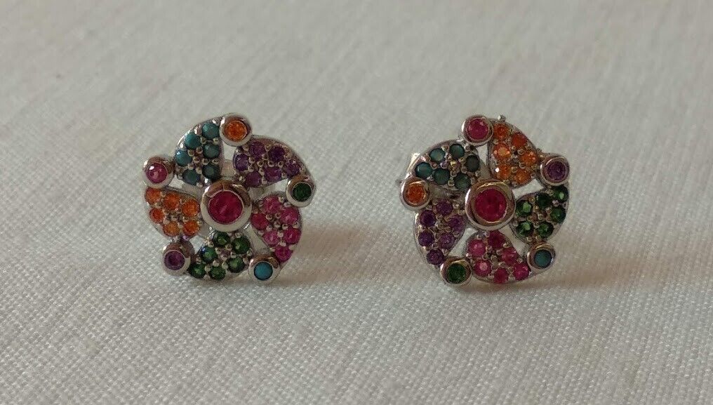 Preciosos pendientes en Plata de primera Ley rodiada cuajados de pequeñas piedrecitas multicolor.