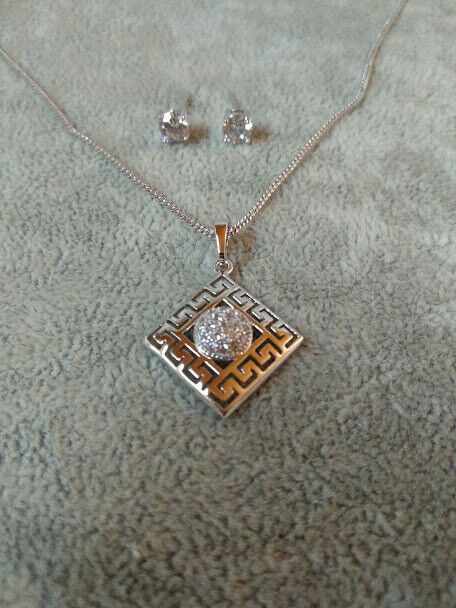Precioso y delicado conjunto de pendientes y gargantilla en bisuteria libre de niquel con forma de rombo el colgante y sencillos pendientes de cristal sujeto con 4 garras.