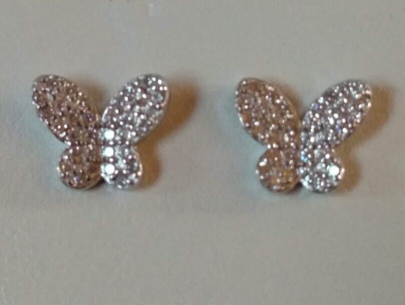 Precioso y delicado conjunto de pendientes y gargantilla en Plata de Ley con acabado de rodio con forma de mariposa cuajada de circonitas.
