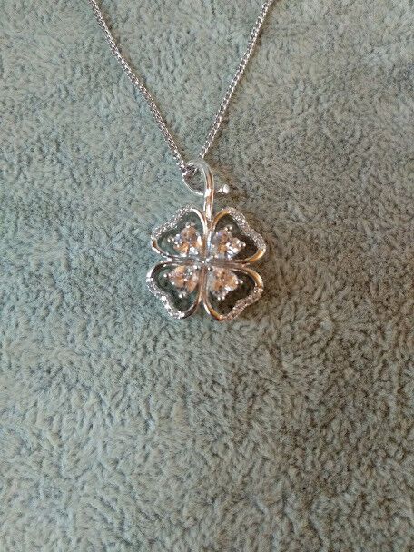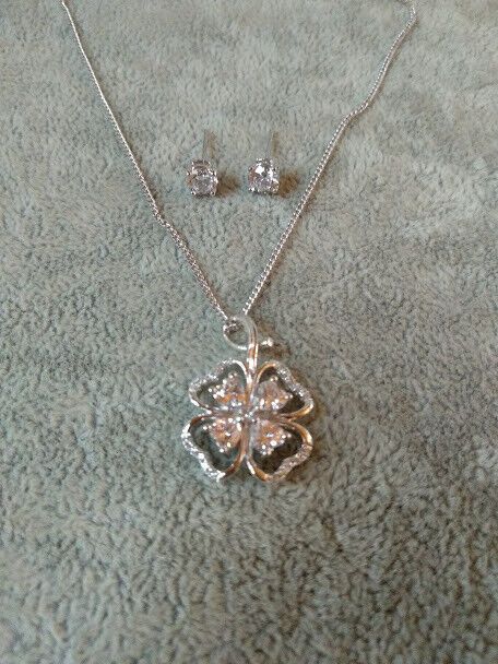 Precioso y delicado conjunto de pendientes y gargantilla en bisuteria libre de niquel con forma de trebol de cuatro hojas el colgante y sencillos pendientes de cristal sujeto con 4 garras.