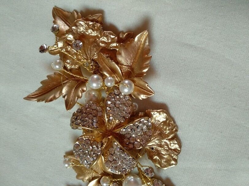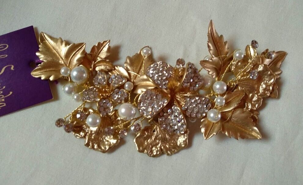 Bonito aderezo mujer para adornar el pelo en color dorado combinando perlas y símiles color blanco de diferentes tamaños
