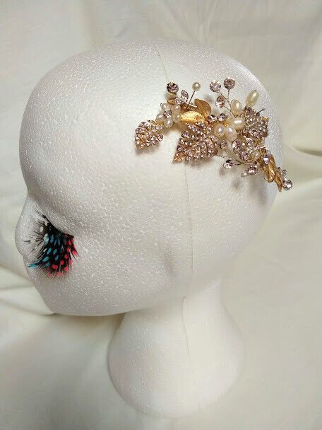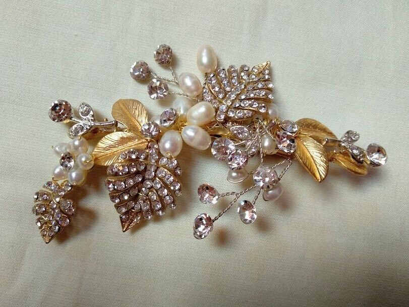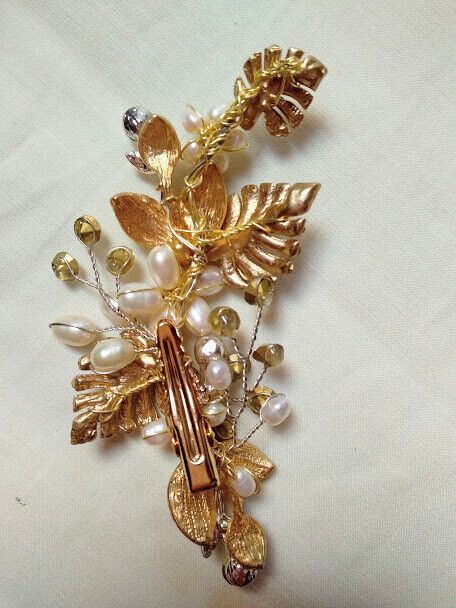 Bonito aderezo mujer para adornar el pelo en color dorado combinando perlas y símiles color blanco de diferentes tamaños