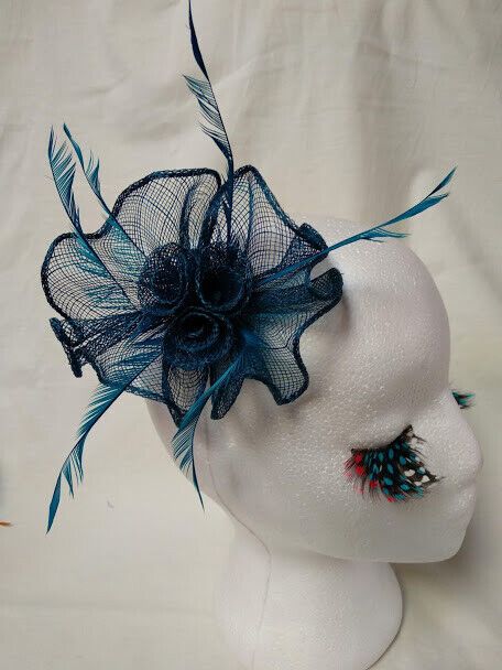 Bonito tocado para ceremonia color azul turquesa con forma de flor confeccionado con rafia y plumas