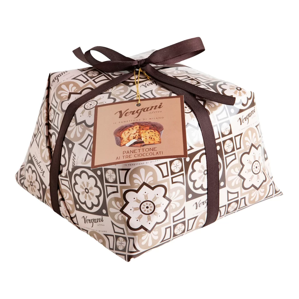 Muy pocos se resisten a un buen Panettone de tres chocolates Vergani. Su textura y su increíble sabor no le dejara indiferente y puede que hasta lo comparta contigo.