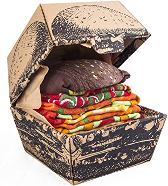 Un divertido pack de 2 pares de calcetines de algodón Rainbow Socks con una divertida y original presentación de hamburguesa vegana. Seguro que no le dejaras indiferente.