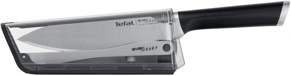 Sorprendele con este Cuchillo de chef TEFAL de 16,5 cm con afilador integrado en la funda es super practico porque cada vez que lo saca y lo guarda se afila.